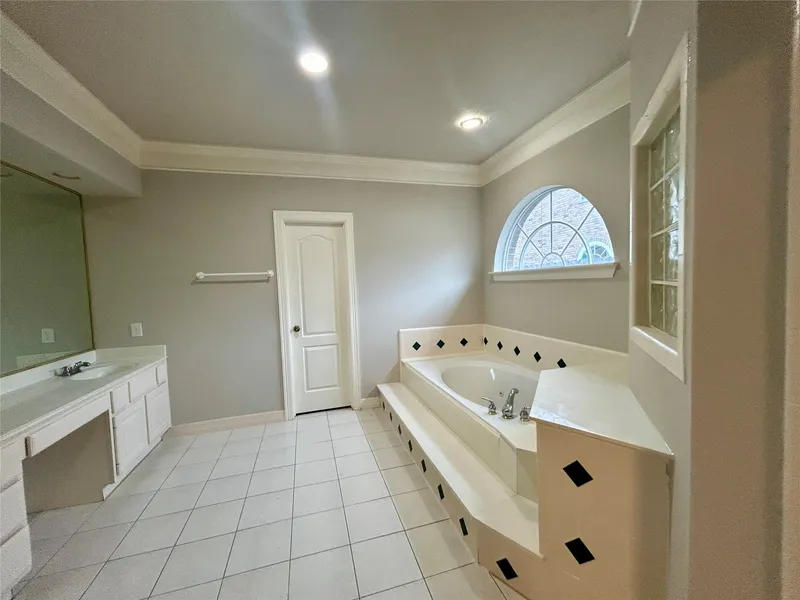 4 bed, 1-story home! Beautiful entry with glass door, wood floors, formal dining and living space! Archways throughout home create an elegant look. Family room boasts extra-high trey ceiling with accented recessed lighting along 1 wall. Kitchen opens to family room with space for a breakfast table. Large windows located throughout. Master bath has step-up tub, a separate shower and double sinks! Located in established Wortham subdivision with easy access to Hwy 290!