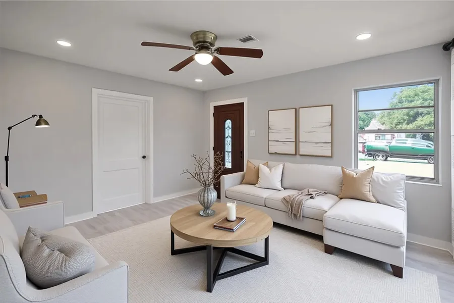This fully newly remodeled home is ready for you to move in! With finishes dating 2021-2022, this home has all the modern amenities you're looking for. From the new led lights and ceiling fans to the fresh paint and floors, this home is move-in ready. The large yard is perfect for gatherings of family and friends, while the butcher block breakfast bar by the dining area provides a great place for meals. You'll love the marble countertops in the kitchen and restroom. Plus, the 2021 water heater and A/C will keep you comfortable all year long. Don't miss out on this one - come see it today!