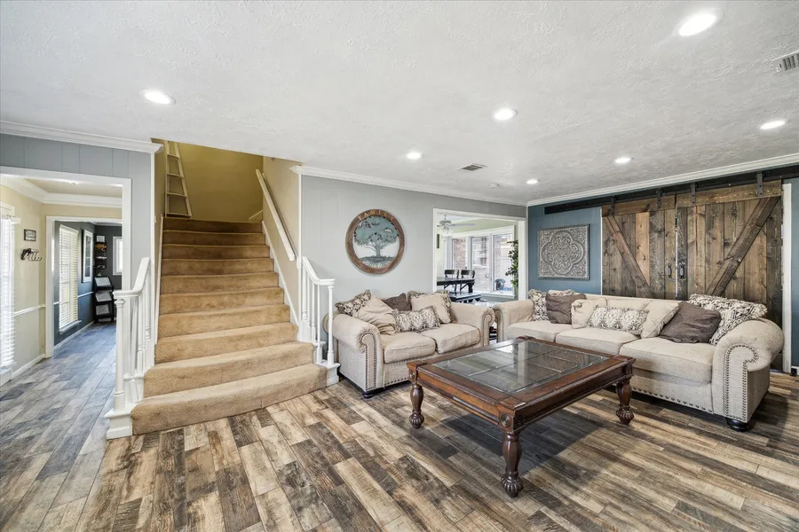 Welcome to this lovely and spacious five bedroom Tudor home in Oaks of Atascocita! Recently updated flooring downstairs as well as other updates, such as recessed lighting and sliding doors heading to the flex room. Kitchen is bright with adjacent dining area. In the study, as well as some other areas, you will find charming stained glass windows. Recently replaced HVAC system! Detached garage with extra long driveway. Large in house laundry room downstairs. Home priced below appraised value!