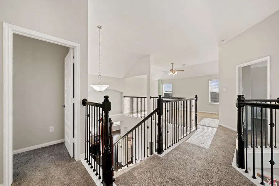 Energy-smart Meritage home on a quiet cul-de-sac in master-planned Riverstone Ranch, loved for friendly neighbors, lakes, pool, recreation center, trails & community activities! Custom glass inlay mahogany front door opens to a functional 2-story layout w/ the primary suite on the 1st level, hardwood floors, a private home office/study w/ modern glass-panel doors, formal dining, breakfast area & an open kitchen flowing into the family room w/ a cozy gas-log fireplace. Upstairs, enjoy a spacious game room & generously sized secondary bedrooms. Step outside to a covered patio w/ natural gas hookup & fenced yard w/ sprinkler system, ready for play, pets or weekend BBQs. Built for comfort & savings w/ spray-foam insulation, insulated Low-E windows, Energy Star features, tankless on-demand water heater, LED lights, ceiling fans & high-efficiency HVAC. Smart-home features: Wi-Fi enabled thermostats plus control of the garage door, fans, door lock & lighting. Quick access to Beltway 8 & I-45.