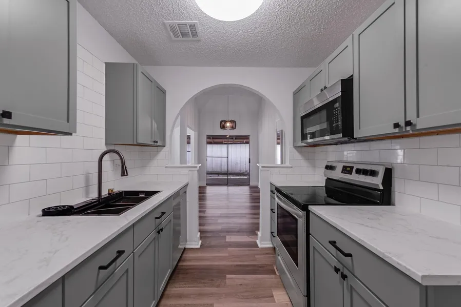 Experience comfort and modern living in this beautifully updated home situated on a spacious corner lot in Cypress Trails/Timber Lane. This residence boasts a comprehensive renovation, including a new roof, HVAC system, water heater, and energy-efficient foam insulation in the attic. Inside, you'll find fresh paint, luxury vinyl plank flooring throughout, and a remodeled kitchen featuring new cabinets, countertops, and appliances. The open-concept living area is enhanced by high ceilings and a cozy wood-burning fireplace, creating an inviting atmosphere for relaxation and entertaining. The primary suite offers a tranquil retreat with a soaking tub and closet space. Enjoy outdoor living on the covered patio, perfect for gatherings or quiet evenings. Conveniently located near I-45, Hardy Toll Road, and George Bush Intercontinental Airport, with easy access to shopping, dining, and parks. This move-in-ready home has modern updates & QUALIFIES FOR A GRANT upt to 10k!