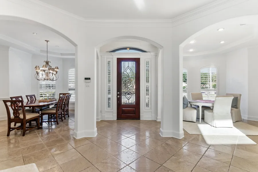 Step inside this charming 5 bed, 3.5 bath home in the Energy Corridor! The island kitchen features stone floors, granite counters w/ tile backsplash, gas cooktop, double electric ovens, built-in microwave, built-in pantry, eat-in breakfast bar, under cabinet lighting & SS refrigerator. The island kitchen is open to the family room which has high ceilings, built-in entertainment nook, gas-log fireplace, wet bar w/ mini wine fridge & views of the backyard. The primary suite is on the 1st floor w/ built-ins, tray ceilings, plantation shutters, a ceiling fan & views of the backyard. There are stone floors, double sinks, granite counters, walk-in closet, over sized jetted soaking tub & separate standing shower w/ tile surround in the primary bath. All secondary bedrooms are upstairs with carpet floors & nice size closets. Other home features include: Gameroom up, central vacuum, sprinkler sys...
