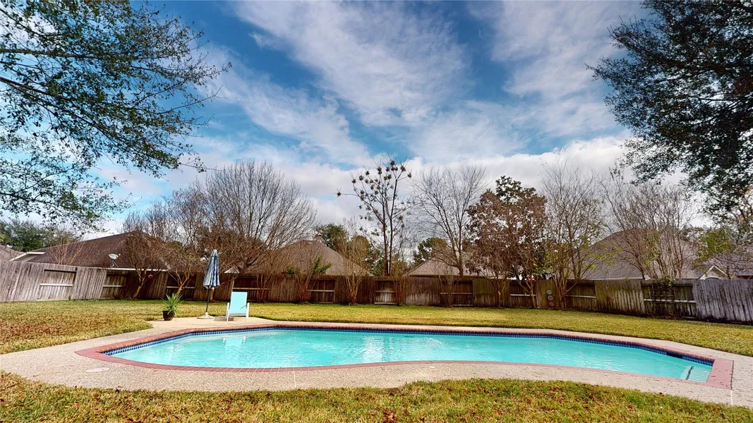 Beautiful 3 bedrooms, 2 bath w/an open concept & split floor plan that has been updated & well maintained! Inviting entry w/high ceilings, crown molding, gorgeous tile throughout opens to flex room & formal dining. Kitchen offers updated SS appliances, 42" cabinets w/under cabinet lighting, granite countertops, w/large kitchen bar open to spacious family room w/a wall of windows that offers natural light overlooks large backyard. Relax & unwind in oversized backyard w/covered patio & pool. Spacious primary w/ensuite w/dual vanities, soaking tub to relax, separate enclosed shower & large walk-in closet. Secondary bedrooms are generously sized w/ample closet space for family & guests. UPDATES:2025-Sprinkler Modules, 2021-Fence. 2020- Roof, Exterior & Interior paint, Water Heater & Swimming Pool Heater. 2019-SS Appliances, 2014-AC, & Heater/Furnace. Home never flooded. Call TODAY to schedule a private tour & make this house your HOME SWEET HOME!
