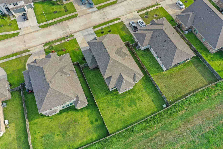 Immaculate 2-story home on a 70 ft lot with no back neighbor for added privacy! This home boasts a 3-car attached garage with a widened driveway, excellent brick/stone curb appeal with a shaded porch, whole house water softener with reverse osmosis, high ceilings, open floorplan, and extended covered back patio for outdoor entertaining! The 1st floor offers luxury vinyl plank, a formal dining, living room with a vaulted ceiling, breakfast room, and beautiful kitchen with granite, a large breakfast bar island, gas cooktop, and double ovens. Also downstairs are 2 bedrooms and 2 full baths including the primary suite with bay windows, dual sinks, separate shower, soaking tub, and walk-in closet while upstairs holds the game room, 2 more bedrooms, and the 3rd full bath. Conveniently located less than a mile from the neighborhood amenities, plus easy access to TX-99, Hwy 290, Houston Premium ...