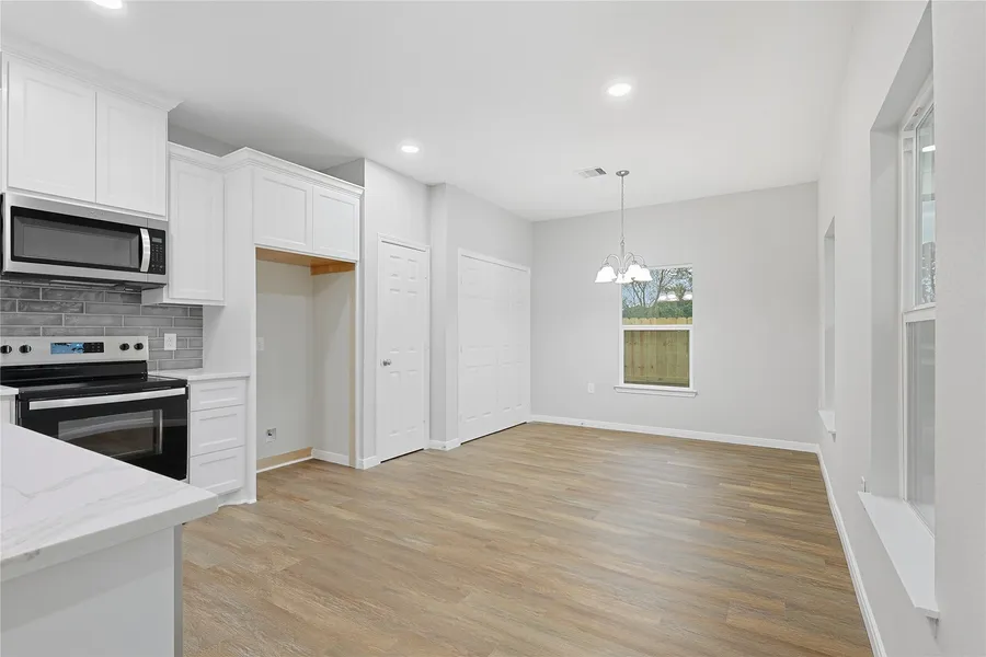 Check out this beautiful Brand-New Construction property ready for you to call HOME! 3 beds and 2 baths with an open concept, makes it perfect for bonding time with loved ones. 9ft ceilings give this property a very spacious feel and the modern vinyl floors help make everything flow and come together. Kitchen has beautiful quartz countertops and a lovely backsplash combined with the crips white cabinetry to giving it that clean and elegant feel. Restrooms have nice granite countertops and tile running up the shower walls to give it that extra touch for a more elevated look. Backyard is fully fenced and is large enough for barbeque cookouts and kids/pets to play. Home is located in a quiet neighborhood with NO HOA and extremely low taxes! Property is great for a first-time homebuyer or even an investor to add to their portfolio. Don't miss your opportunity to scoop this one up!