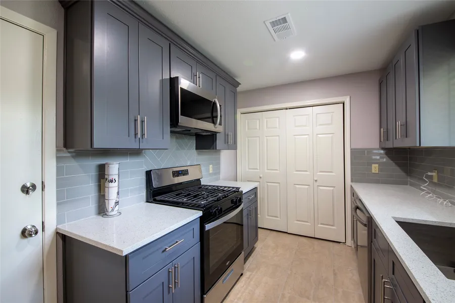 This modern residence boasts 2400 square feet of updated living space, featuring 5 spacious bedrooms and 3 bathrooms, including 2 primary bedrooms situated within an expansive open floor plan. Conveniently located near TX-249 and I-45, the property offers seamless access. The kitchen stands out with its elegant quartz countertop, matching backsplash, new cabinets, fixtures, and appliances. Throughout the house, you'll find tile flooring, while the bathrooms showcase frameless standing showers, tubs, new vanities, and fixtures. Additional updates include new doors, windows, baseboards, and ceiling fans. Most notably, the expansive covered patio and backyard provide ample space for family gatherings. And best of all no HOA and never flooded!