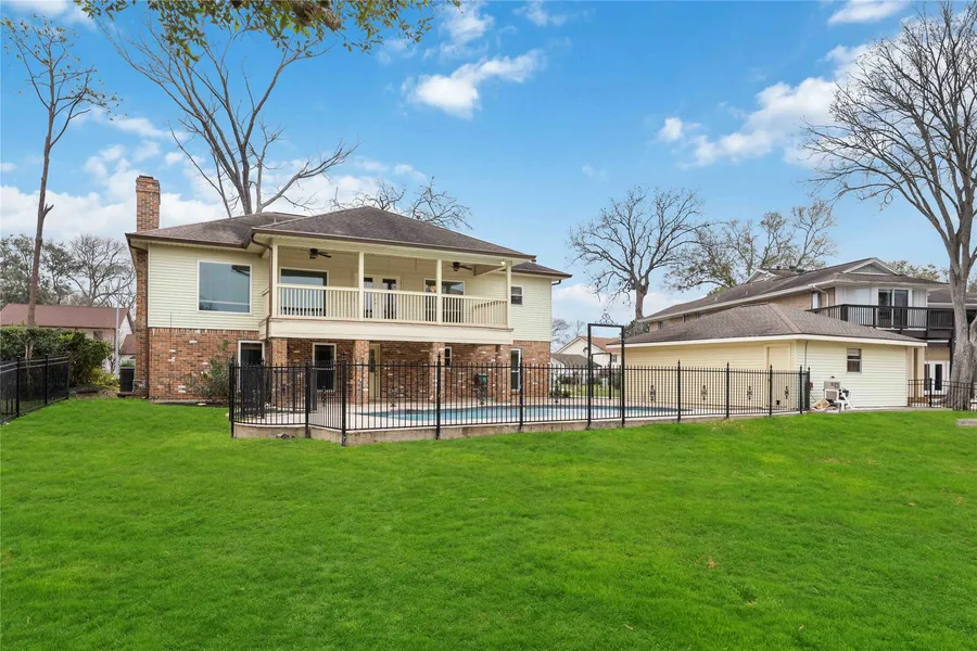 WATERFRONT DREAM HOME!! MOVE-IN READY 4-bed, 2.5-bath, two-story home nestled on just under 1/2 acre in Nassau Bay. This custom oasis features meticulously maintained landscaping, a large covered front porch, beautiful hard surface flooring, bright airy rooms, a focal brick fireplace with custom built-ins, an expansive rear patio, an upper level covered rear porch, a private fishing dock, a fire pit, a fully fenced in-ground pool, and a 2-car detached garage. Brand new HVAC. Do not miss this rare opportunity!