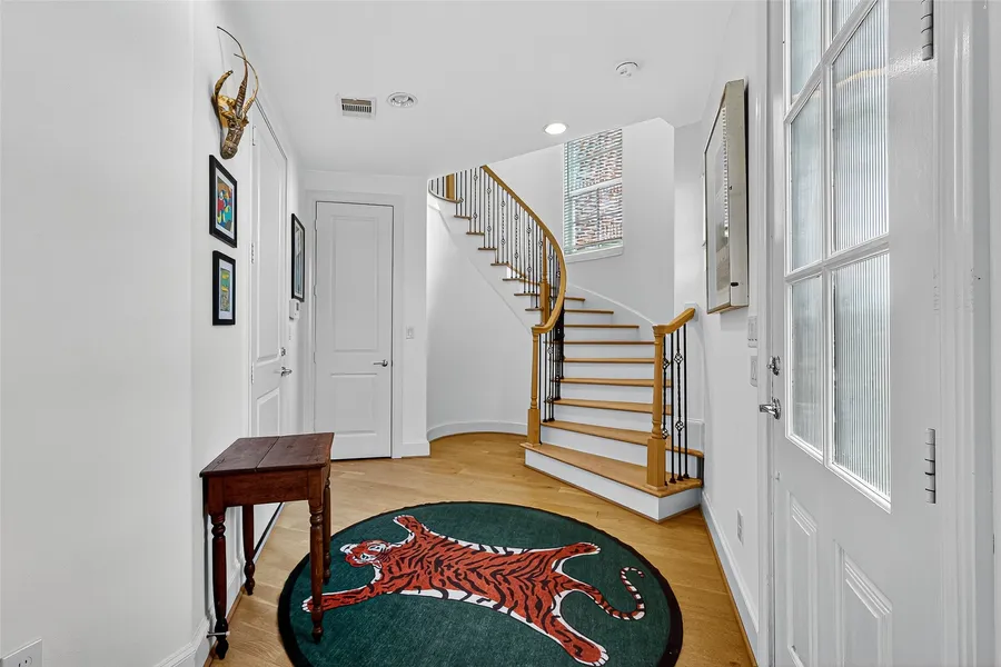 Welcome to this beautifully designed single-family home in a gated community that rivals new construction complete w/a fully fenced private yard. Thoughtfully laid out for both comfort & style this home offers an inviting feel the moment you enter. 1st floor w/private guest suite & full bath. A striking spiral staircase leads to the open-concept 2nd floor where spacious living & dining areas flow seamlessly into the kitchen ideal for everyday living & entertaining. Kitchen offers sleek cabinetry,stylish backsplash,pendant lighting,gas range,pantry w/lg island w/breakfast bar seating.3rd floor hosts serene primary retreat & spa-like bath w/double sinks,soaking tub,& separate shower w/additional bedroom & en-suite bath for added privacy. Enjoy the lifestyle this gated community provides including a resort-style pool, dog park, scenic pond & walking trails. With elegant design,private outdo...