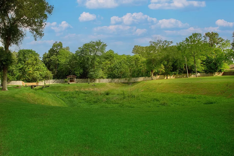 One story Mediterranean style home on nearly 4 unrestricted acres in Spring! Gated entry, circular drive, private well, Brazilian cherry hardwood flooring, faux wood blinds, roof replaced in 2015, and the washer/dryer/deep freezer and fridge are included. Island kitchen with breakfast bar and brand new six burner commercial gas stove; elegant formal dining and spacious living area with a beautiful granite fireplace; four bedrooms, three and a half baths; freestanding recreation room and spacious two car garage; lovely cabana by the detention pond, and an abundance of fruit trees in the private, fenced yard. Ideal for commercial or home-based business.