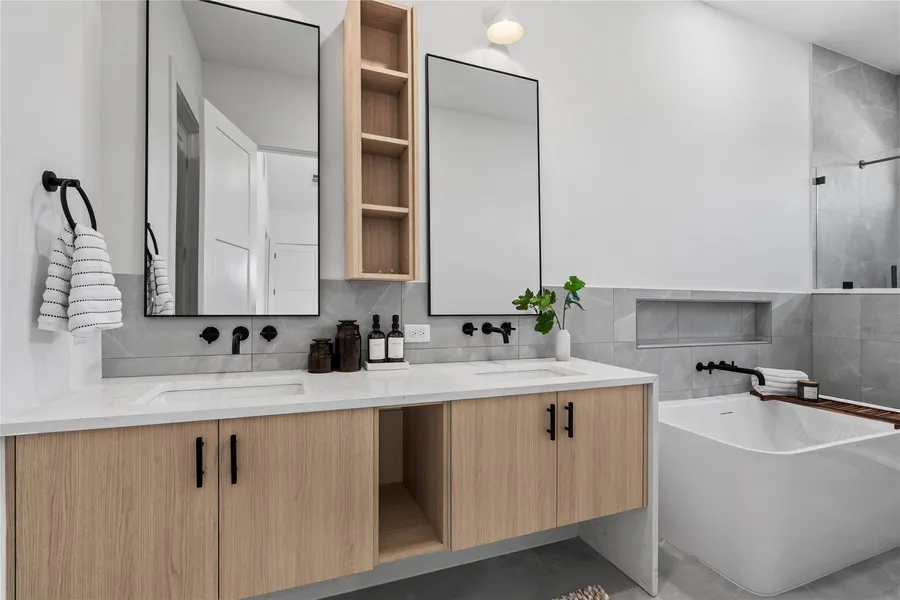 Vecino Homes, in collaboration with Viarq Designers, introduces a new architectural design that builds on a sold-out predecessor—previously selling out in less than 30 days. This 3-bedroom, 2.5-bath residence showcases 11-ft ceilings on the first floor and 10-ft ceilings on the second, creating an airy, elevated feel throughout. The chef’s kitchen includes a pot filler, expansive waterfall island, custom cabinetry with cubby displays, dry bar, walk-in pantry, quartz countertops, and stainless steel appliances. The living area centers around Vecino’s signature Roman Clay accent wall and fireplace. Upstairs, the primary suite offers cathedral ceilings, a custom closet, and a spa-inspired bath with a standalone tub and oversized shower. Situated on an oversized 4,000 sq ft lot with a motorized front gate, garage storage, and crawl-space storage—this home blends design, function, and timeles...