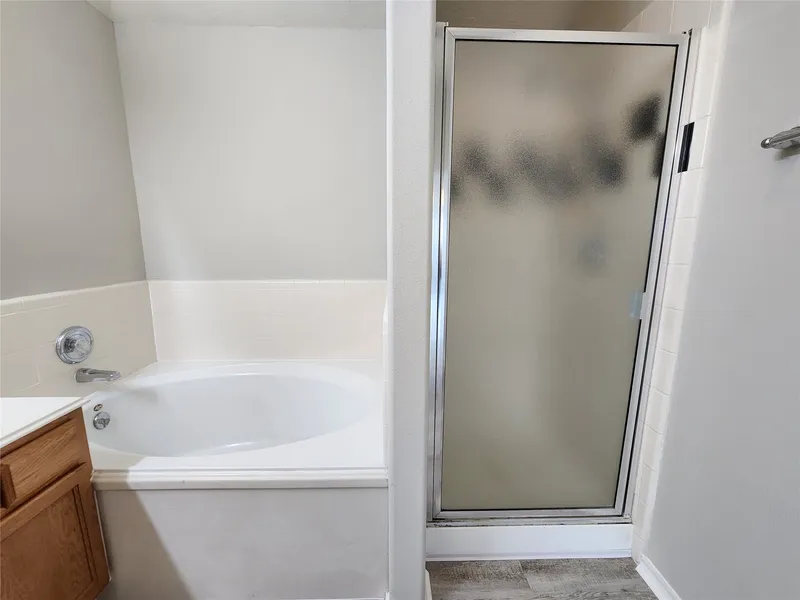 All bedrooms feature no carpet, providing a clean and low-maintenance feel. The primary suite includes a soaking tub, separate stand-up shower, and dual sinks for added convenience.