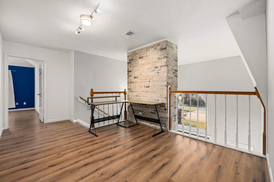 Don't miss out on this move-in-ready home adjacent to Oak Forest! Spacious living room with wood-look tile flooring, stunning accent walls, wood-burning fireplace, tons of natural light, wet bar & high ceilings! The attention to detail in this house is incredible! Chef's kitchen with new cabinets, quartz counters, designer backsplash, crown molding, gas range & stainless steel appliances! Refrigerator included! Eat-in breakfast area & elegant dining room. First-floor master bedroom with a stunning master bathroom featuring a freestanding bathtub, walk-in shower with a sitting bench, recessed lights, marble flooring, new cabinets & dual vanities! The only carpet in the house is in the master bedroom & on the stairs! Double-pane windows throughout! Upstairs game room and three additional bedrooms with walk-in closets! Enjoy entertaining on the covered patio & spacious backyard! Two car garage with an extension for a gym or workshop! Recent roof, AC blower and more! Check out the 3D tour!