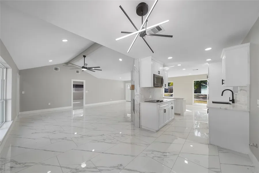 Welcome home to this fully renovated 4-bed, 2-bath home with an inviting pool! This home delivers modern upgrades and everyday comfort in a bright, open layout. The backyard features a maintained in-ground pool and patio, perfect for relaxing or hosting gatherings. Inside, enjoy a refreshed kitchen with quartz countertops and an induction cooktop, paired with updated cabinetry and sleek finishes. Luxury til flooring flows through all living areas for durability and easy care. Bathrooms include quartzite counters and ceramic tile floors for a clean, modern feel.