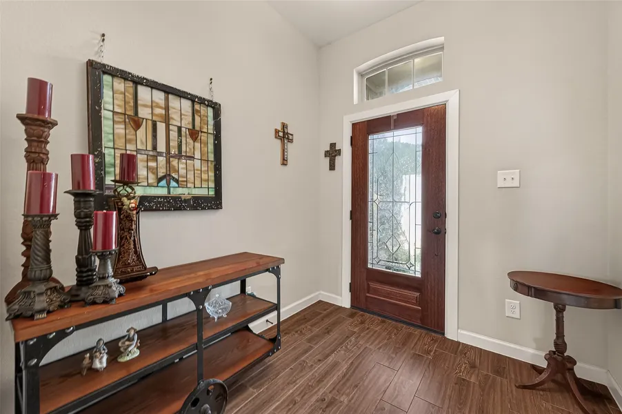 This one is the perfect one-story with all the bells and whistles - a spacious foyer greets you as you enter the front door - to the left are French Doors leading to your private study nestled away from the rest of the house - continue down the hallway and you are greeted by an open plan with a large kitchen island with gorgeous pendant lights and plenty of seating for your guests - kitchen opens to dining and dining opens to living - high ceilings add to the grandeur - living areas are covered in wood-look tile - the primary bedroom is tucked in the rear of the home with a generous en-suite bath including separate walk-in shower and tub plus double vanity - other secondary bedrooms align the hallway - included in this plan are multiple storage closets to keep all your possessions nearby - located on a large lot with a great backyard - built by David Weekley
