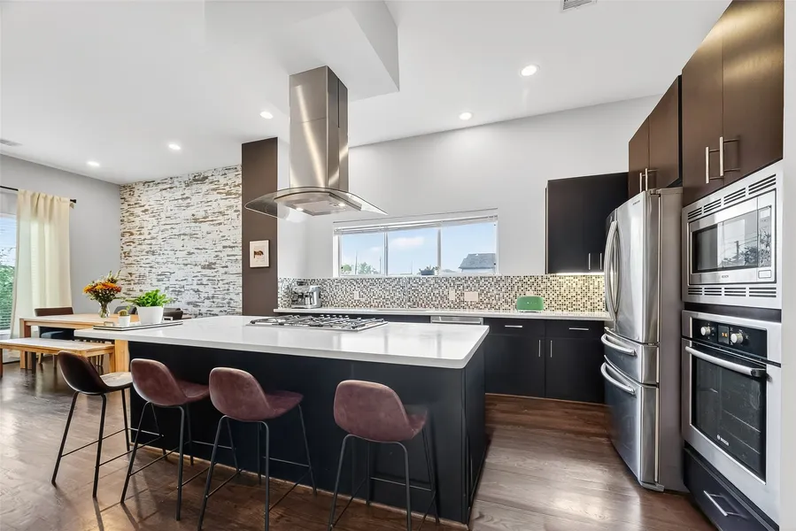 NO STUCCO & NO HOA FEES!! LOCATION; check! SHOWSTOPPING HOME; check, check! Sawyer Heights gem on a corner, has all you're looking for & then some! Here's your opportunity to own this meticulously maintained, Energy Star rated, Smart Home! Open-concept with high ceilings, lots of windows & FANTASTIC city views from the roof-top terrace complete with water & gas connections, ready for you to entertain! Kitchen boasts massive island & features Bosch appliances, soft-close drawers & cabinets. Owner's retreat is ample with dual closets & large tub. No carpet anywhere at all; floors are stained concrete, tile & wood. Recent updates include new roof (2024), siding (2023), landscaping (2025). Whether you like creating a space for your indulgence or enjoy hosting; this is the perfect residence! Being in close proximity to shopping & entertainment without being in the thick of it is a bonus! Ple...