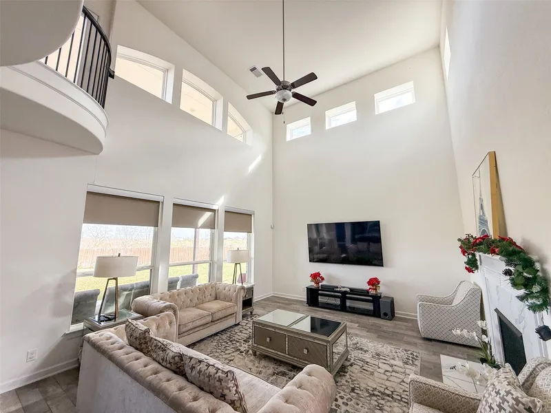 Stunning 5-bedroom, 4.5-bath, high ceiling Westin Home in prestigious Katy Lakes! This 3,220 sq ft masterpiece sits on a huge 0.36-acre cul-de-sac lot featuring a soaring two-story family room with fireplace and gourmet kitchen with granite counters and breakfast bar island. Upstairs boasts an expansive game room open to the family room below, dedicated media room for movie nights, and covered balcony overlooking the massive backyard perfect for outdoor entertaining and relaxation. Primary suite with separate tub/shower plus guest suite with private bath downstairs. Comes with a walk-in pantry, premium finishes, and traditional architecture. Open floor plan ideal for hosting with seamless indoor-outdoor flow. Two-car attached garage included. Move-in ready in sought-after Katy ISD! This exceptional home offers luxury, space, and endless possibilities for modern family living and entertai...