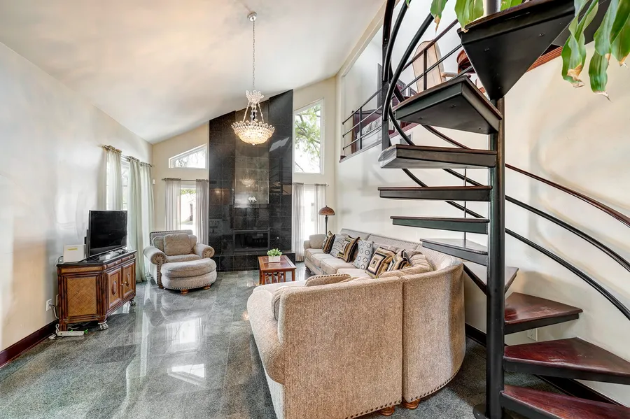 Updated in a prime location! This Brays Village home has been renovated and is ready for a quick move in. The entrance opens immediately to the open concept living/kitchen/dining rooms. The kitchen features Wolf cooktop/oven and microwave along with a two-door Sub Zero refrigerator (negotiable). The spacious living room is centered on a fireplace with a floor-to-ceiling marble tile surround and a wet bar. Looking down onto the living room is a large loft space with its own bar and a Sub Zero pull-out refrigerator. The backyard has a large deck and pergola and has great shade. Currently being used as a successful vacation rental. All info per Seller. Contact Agent for exclusion information and furniture opportunities.