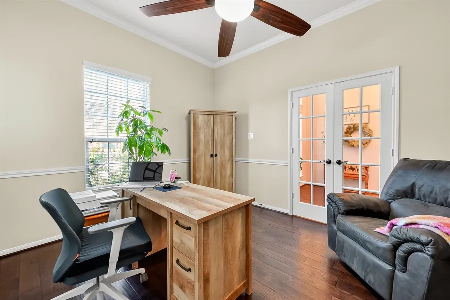 Welcome home to this beautiful one-story retreat in the desirable Autumn Lakes community of Friendswood! Nestled on an oversized lot, this 3-bedroom, 2.5-bath home offers a welcoming open layout with wood floors, a cozy office, and bright living and dining spaces perfect for gatherings. The island kitchen features custom cabinets, stainless steel appliances, and a cheerful breakfast area overlooking the backyard. The spacious primary suite is a peaceful escape with high ceilings, a soaking tub, double sinks, and a separate shower. Step outside to your own backyard paradise with a covered patio, sparkling pool, soothing waterfalls, and plenty of green space. Conveniently located near NASA, Kemah, parks, and top-rated schools. All info per seller.
