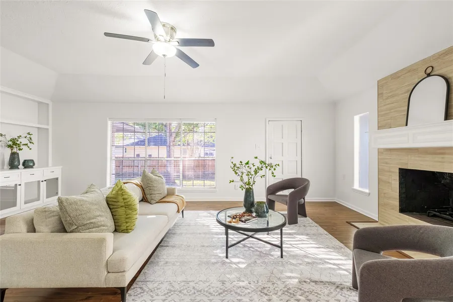 Welcome home! This thoughtfully updated one-story blends everyday comfort with modern style. Fresh paint on the walls & cabinets create a bright, welcoming feel, while brand-new carpet in the secondary bedrooms adds a soft touch underfoot. The kitchen offers the perfect mix of function & charm with granite countertops & an inviting eat-in breakfast space. Just off the kitchen, a formal dining room flexes easily into a home office or even a playroom, giving you options as life evolves. Gather in the spacious living room where a cozy gas fireplace becomes the centerpiece on cool evenings. Large windows fill the space with natural light & overlook a fenced backyard shaded by mature trees, a relaxing retreat for morning coffee or weekend barbecues. Bathrooms are updated with stylish vessel sinks for a modern touch. Important upgrades bring peace of mind, including an HVAC replaced in 2022 & a new electrical box installed in Sept 2025. Comfortable. Functional. Welcoming. Bee Inspired Living