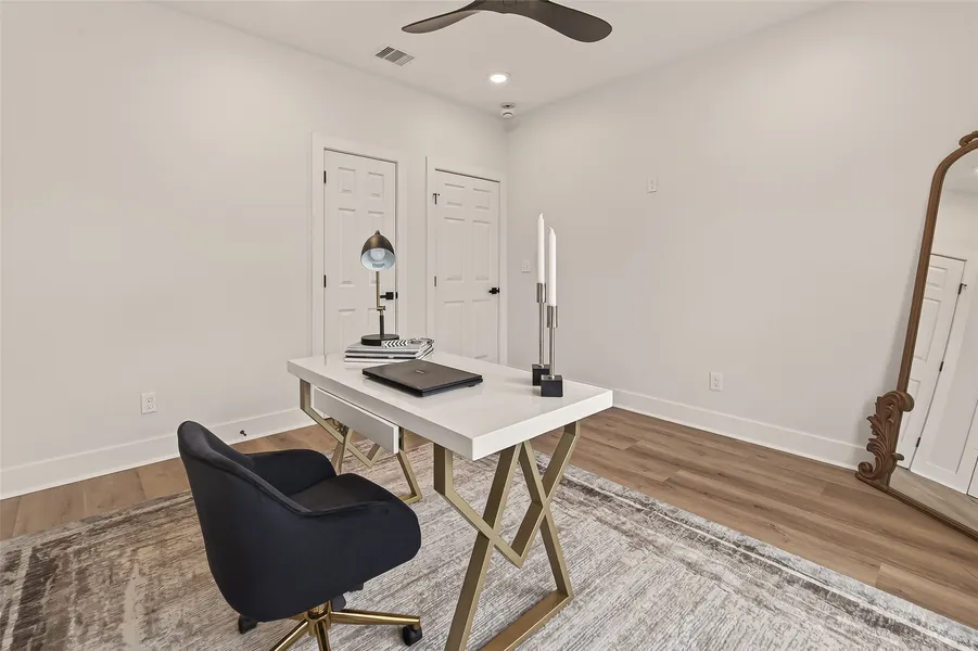 This beautifully reimagined Lindale Park gem offers over 2,000 sq ft with 3 bedrooms and 3 full baths. Step inside to soaring vaulted ceilings and an open, flexible layout—perfect for living, dining, or play. The chef’s kitchen is the heart of the home, featuring a massive waterfall island, gas range with pot filler, and custom cabinetry. A bonus full bath off the laundry room with a spacious shower doubles as a guest or pet bath. Two secondary bedrooms are generously sized, while the primary suite impresses with a walk-in closet and dual-control spa shower. Enjoy a covered back patio, fenced yard, and incredible curb appeal. Experience the charm of Lindale Park—the “Hidden Jewel” of Houston—with easy access to downtown, rail line, and major highways.
