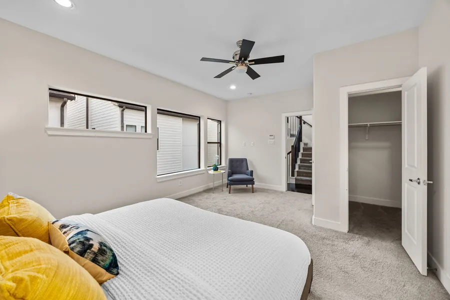 Experience contemporary city living at 2005 Hickory St, located in the highly desirable First Ward Arts District, just steps from the Heights Hike & Bike Trail, shopping, dining, and entertainment. This stunning freestanding home features granite countertops, dark bamboo flooring, and an open-concept layout ideal for entertaining. Multiple outdoor spaces include a private backyard patio, a balcony off the living area, and a rooftop terrace showcasing breathtaking downtown views. Recent upgrades ensure comfort and peace of mind, including a recent HVAC system and water heater (2023) and fresh interior paint throughout (2025). The primary suite offers a spa-like bath and generous closet space.