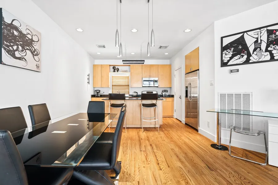 This contemporary two-story townhome offers style, and convenience. Situated in a small, gated community near downtown, the home features open and bright living and dining spaces with a seamless flow into the kitchen. The chef’s kitchen boasts an island with seating, granite countertops, a walk-in pantry, and a gas range—perfect for both everyday cooking and entertaining. A utility room is conveniently located inside the home, with washer and dryer included. Additional highlights include wood floors throughout, abundant storage, and a two-car attached garage. Each bedroom features its own ensuite bathroom, providing privacy and comfort for all residents. Prime location and excellent amenities! All info per Seller.