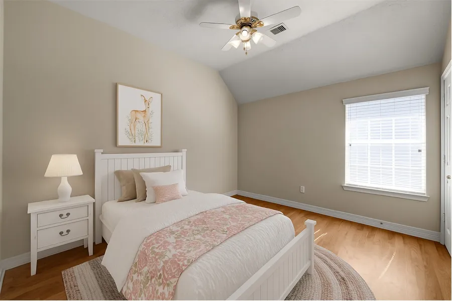 Welcome to this stunning one-story home in the highly desirable Champions area. Featuring 3 bedrooms and 2.5 baths, this home boasts soaring ceilings, impeccable craftsmanship and abundant natural light. The open-concept design seamlessly transitions from the spacious kitchen into the living area, ideal for everyday life and entertaining alike. Granite countertops, breakfast bar, and island with a cooktop makes this kitchen a standout. The primary suite includes a cozy sitting/library nook and easy access to backyard patio, offering a peaceful retreat within the home. Additional highlights include a carpet-free interior, a flex room perfect for a home office, a whole-house water softener, and a vast backyard complete with a covered patio. All this and a convenient location just minutes from shopping and medical facilities.