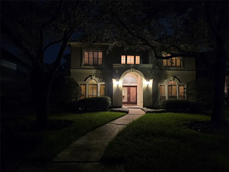 This elegant home includes plantation shutters, tile and wood flooring throughout and granite countertops in the bathrooms. Chefs delight in the gas range in the bright and airy kitchen, coupled with the formal dining room and study. The spacious owner’s suite enjoys a spa tub, separate shower, double sinks and a generous walk-in closet. Double doors open to your private oasis backyard complimented with bright red roses, waterfall, saltwater pool and spa, heated for year-round enjoyment. The upstairs includes a generous game room and 4 bedrooms. Two high efficiency rated Trane AC units installed in 2022 to keep you cool all summer long.