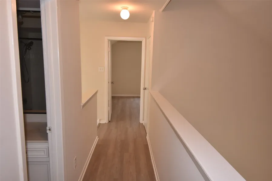 3 bedroom, 2 bath, 2 garage property with fresh paint in & out, new roof shingles, and new vinyl plank flooring on both floors. The first floor boasts a large kitchen with wet-bar, spacious den with fireplace and high ceilings, 2 dining areas, and the primary bedroom suite. The upstairs has 2 bedrooms and a convenient hall bath. The back yard is fenced with a concrete patio.