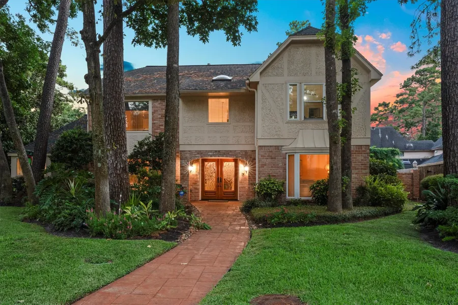 Framed by stately trees on a generous corner lot, this Champion Forest residence pairs architectural presence with everyday warmth. Inside, a grand foyer with sweeping staircase opens to multiple living areas anchored by a striking double-sided fireplace. The custom kitchen features abundant storage, built-ins, and a charming corner window with garden views, while a wet bar enhances flow for entertaining. The first-floor primary suite offers a spacious retreat with spa-inspired bath and walk-in closet. Outdoors, a heated saltwater pool and spa surrounded by lush greenery create a resort-style backdrop. With a 3-car garage, versatile spaces, and timeless Champion Forest character, this home balances elegance with livability. In award-winning Klein ISD. Iconic Champions Golf Club, Vintage Park, Kickerillo Peserve, Pearl-Finch Museum Of Fine Arts nearby. Convenient to 249,99, 8. Welcome to The Forest!