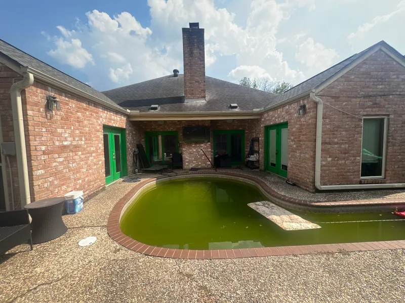 Welcome to this charming one-story home in Lakeview Forest, an established West Houston community. Featuring 3 bedrooms, 2 full baths, a 2-car attached garage, and a private courtyard, this property offers both character and comfort. Inside, you’ll find laminate flooring, crown molding, and plenty of natural light. The family room highlights a cozy gas log fireplace and French doors that open to a fully fenced backyard with a sparkling in-ground pool. The bright chef’s kitchen boasts abundant cabinets, a brick backsplash, double ovens, stainless steel dishwasher, and a breakfast area. The spacious primary suite includes vaulted ceilings, dual sinks, a stand alone tub, separate shower, and a walk-in closet. Conveniently located minutes from CityCentre, Memorial City Mall, and the Energy Corridor, with nearby shopping, dining, and entertainment. Zoned to Houston ISD, this home is priced to reflect updates needed—an excellent value in a desirable Houston neighborhood.