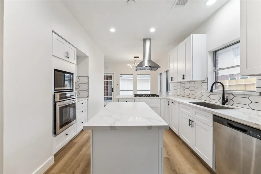 Beautifully renovated home in Jamestown Colony with no back neighbors, a private hot tub retreat and classic sunroom! Recent upgrades include a new roof, new HVAC, new plumbing, and updated electrical. Inside, enjoy sleek quartz countertops, all-new appliances, and chic contemporary fixtures. Tile and wood flooring grace the main living areas and primary suite, while soft new carpet fills the secondary bedrooms and the upstairs game room. A detached garage and extended driveway round out the package. Conveniently located near shopping, dining, and outdoor recreation with quick access to Highway 6 and US 290.
