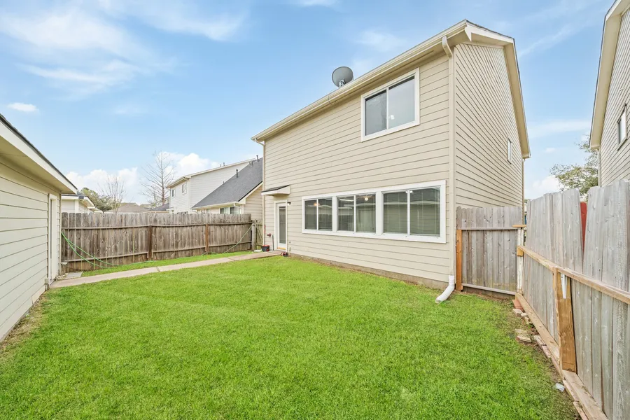 This Lakeville two-story house offers a well-designed layout with ample space. The first floor includes a formal dining room, an office/flex/optional 4th bedroom, a living room with a cozy fireplace, and a kitchen featuring a breakfast room and recent black stainless steel appliances. Upstairs, you'll find all the bedrooms and a game room. The primary bedroom boasts a walk-in closet and a private bathroom with a separate shower and jetted tub. The water heater was replaced in December 2023. Washer, Dryer, and Refrigerator included with the house. Convenient location. ONLY 7 minutes to HWY 99, 3 minutes to the park, 5 minutes to local markets like HEB, Aldi, shopping centers and restaurant