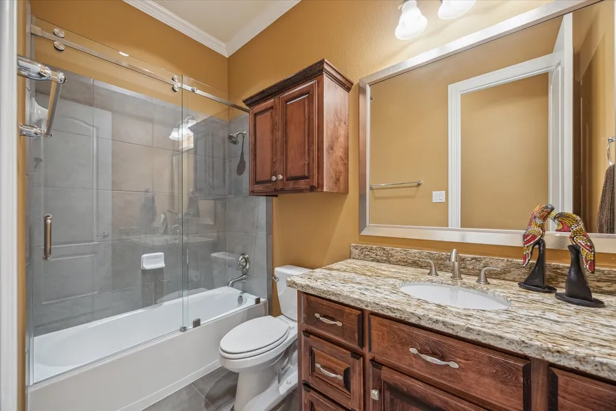 Beautifully upgraded 3-bed, 2.5-bath home by Gehan Homes, built in 2018, offering modern comfort and easy access to Hwy 99 and Westpark Tollway. A charming leaded glass front door opens to high ceilings and an open-concept layout with a spacious living area featuring a gas fireplace, stone accent walls, and crown molding, flowing into a granite island kitchen with dining space. Includes a dedicated home office/study and mud room for added functionality.
