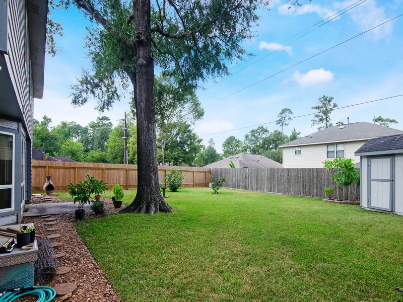 This home is clean, maintained 3/2.5/2 house on a spacious lot. Home is part of a community featuring a park inclusive of pool, clubhouse, playground and tennis courts. Direct access to premiere linear park, Spring Creek Greenway. Ideally located for quick access to I-45, Hardy Toll Road and Grand Parkway. Nearby shopping and eating in quaint Old Town Spring and minutes from The Woodlands. Wood and tile floors throughout downstairs. Upstairs second living area/den that could be converted into a 4th bedroom. Double-pane insulated windows. Gas appliances and gas log fireplace. Washer/dryer (elec.) and refrigerator included. New roof and A/C in 2022. New gas water heater in 2024. Large shade tree and shed in backyard. Come see your next home.