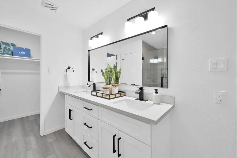 The fully updated kitchen boasts sleek quartz countertops, soft-close cabinets and drawers, stainless steel appliances, and a spacious walk-in pantry—perfect for everyday living and entertaining. The primary suite offers a private retreat with a renovated bathroom and dual closets.