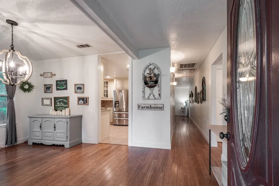NEVER FLOODED! This home is where comfort meets convenience! This well-maintained home has had only two owners, showcasing pride of ownership throughout. Inside, you’ll find a recently updated kitchen featuring granite countertops, stainless steel appliances, and gorgeous real wood cabinets. The refrigerator and stackable washer/dryer stay, making it move-in ready! The spacious primary bedroom includes an en suite bathroom with double closets. Flooring is real bamboo hard wood! Out back, enjoy an oversized deck with a pergola, perfect for entertaining, with no back neighbors for added privacy. There's a storage shed for extra convenience. HVAC system is less than 6 years old and a *NEW ROOF* to be installed prior to closing. Nestled in a low-tax area within a well-established neighborhood, this home offers a quiet, country-like setting while being just minutes from all the perks of city ...
