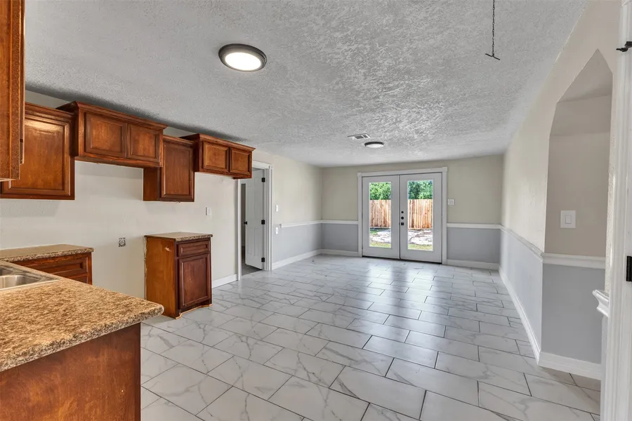 This charming, remodeled home features a split floor plan with a converted garage, providing a total of 4 bedrooms and 2 bathrooms. Updated windows, new lighting, and new flooring run throughout the home. French doors lead out to a spacious, fully fenced backyard with a nice front gate, plus a covered carport for convenient parking.