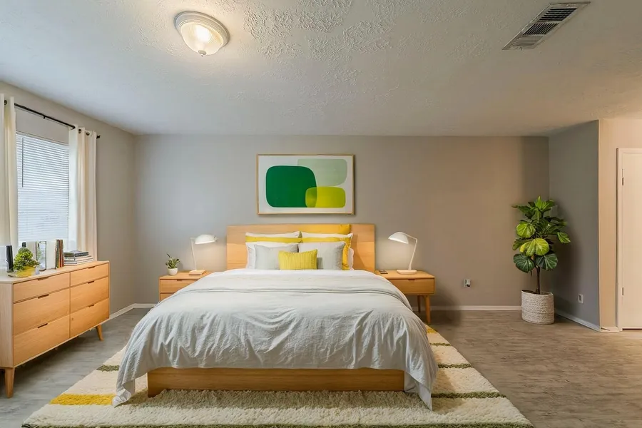 This charming one-story home offers 4 bedrooms and 2 bathrooms, perfectly blending comfort and functionality. The open layout features a welcoming living room with a cozy fireplace, while the kitchen includes a convenient bar for casual dining and entertaining. The primary suite boasts a double vanity and ample space for relaxation. Enjoy the outdoors in the spacious backyard, fully enclosed with a wood privacy fence. A two-car garage completes this well-maintained property. Schedule a showing today!