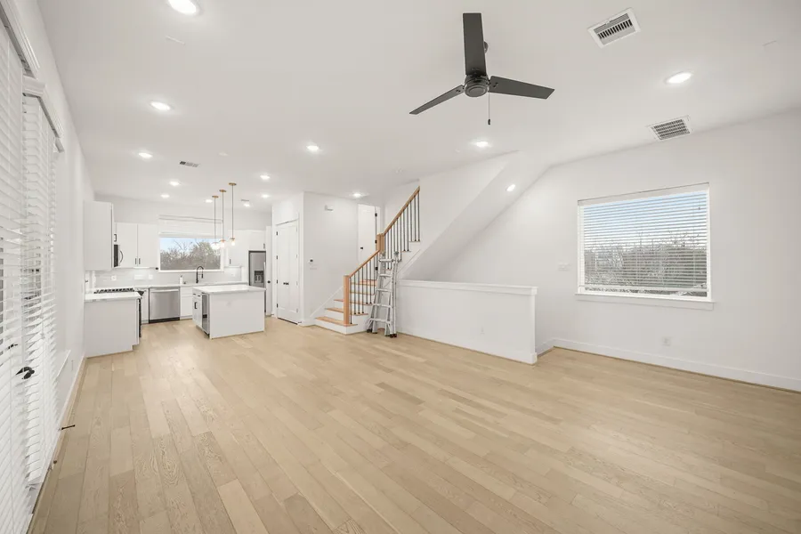 Welcome home to contemporary design and modern comfort at 2811 Anita St. This beautifully finished home features luxury vinyl plank flooring throughout, an upgraded quartz island, stainless steel appliances, shaker cabinets, and a modern glass backsplash in an elegant patterned design within the open-concept kitchen. Enjoy abundant natural light, high ceilings, and a spacious second-floor living area ideal for entertaining. The primary bedroom and bathroom offer Downtown views for a true city-living experience. Conveniently located with quick access to downtown attractions, major highways, dining, trails, Emancipation Park, and sporting stadiums. WASHER, DRYER AND REFRIGERATOR INCLUDED. Well maintained and move-in ready—schedule your showing today!