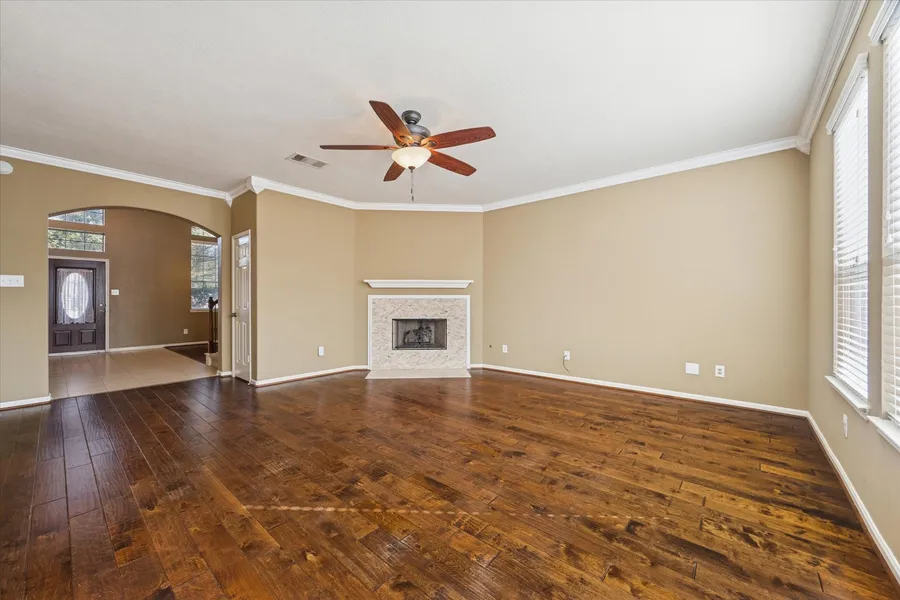 Welcome home to this gorgeous 2-story retreat featuring a relaxing front porch and soaring ceilings that create a grand first impression. Rich wood flooring flows throughout the main living areas, complementing the open floorplan—perfect for family gatherings or entertaining guests. The inviting Kitchen offers granite countertops, abundant cabinetry, and a spacious Breakfast Area for casual dining. The enormous Primary Suite boasts an updated Bathroom with a stunning custom shower, dual vanities, and an incredible walk-in closet. Upstairs, enjoy a large Gameroom with custom built-ins and three spacious secondary Bedrooms with generous closet space. Step outside to the beautifully manicured backyard, complete with a covered patio and sun shades—ideal for outdoor living year-round. Conveniently located near shopping, dining, and entertainment, and zoned to highly acclaimed Cy-Fair ISD scho...