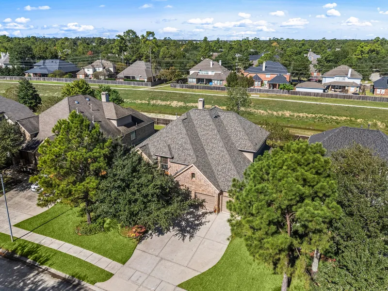 Never flooded & boasting a brand-new Nov ’25 roof w/ transferable warranty, this Highland Home blends elegance, privacy & thoughtful design. No back neighbors! Grand 2-story foyer w/ 20’ ceilings, wrought-iron staircase, crown molding & 8’ doors leads to a private office w/ French doors & plantation shutters. Formal dining opens to a gourmet kitchen w/ granite, SS oven & dishwasher (2025), gas cooktop, island, tumbled backsplash & under-cabinet lighting. Open living area highlights a floor-to-ceiling stone fireplace. Primary retreat offers dual sinks, soaking tub & curbless shower, plus a downstairs guest suite for flexibility. Upstairs features a game room w/ wainscoting & balcony access, media room w/ half bath & 2 secondary suites. Outdoor living includes wraparound covered patio, French drains, sprinklers, 3-car garage & 2019 HVAC. Enjoy Eagle Springs resort-style amenities—pools, po...