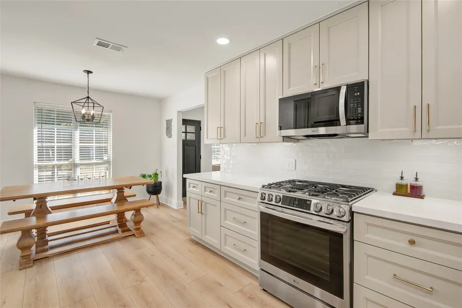 This Home is FULLY REMODELED beginning at the front porch with a modern craftsman front door leading to a bright, open-concept interior with carefully curated finishes throughout. Off the foyer is a perfect work-from-home study set opposite the bright, open dining area. A chef-inspired kitchen overlooks the home's center, a light-filled family room with lofted ceiling & stunning floor-to-ceiling stone fireplace. The private Owner’s retreat is a true sanctuary with it's SPA-INSPIRED ensuite with a custom glass-enclosed shower, dual vanities, natural wood tones, & HIGH-END fixtures—plus four separate walk-in closets! The opposite wing offers two additional bedrooms & shared bathroom with spa-worthy soaking tub. Outside find a spacious patio and MASSIVE backyard, with room to garden, run & play or enjoy a short walk to the pool & tennis courts, neighborhood park, or walking trails. Easy highway access! Modern style and thoughtful finishes make this home MOVE-in-READY for its next owner.