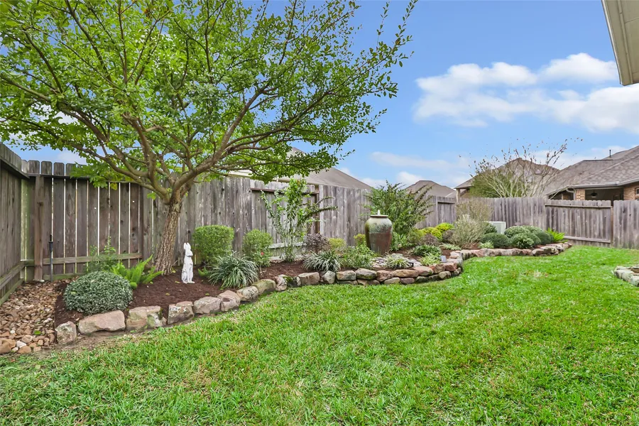 Like new construction one-story home with 4 bedrooms and 3 full baths. This home is the most amazing Village floor plan with Cambridge Collection Features including the Smart Products Whole Home that is controlled by Amazon Alexa. Gorgeous open floorplan that has a large island kitchen that looks over dining area and living area. Kitchen has 42 in cabinets, walk-in pantry, large island with single basin sink, and many other upgrades. The front bedroom has a full bath and is currently used as a home office. In house laundry has been upgraded with custom built-in cabinets and a countertop over washer and dryer that stays with the home. The attached oversized garage has a built-in workshop area. The extended back patio is outfitted with built-in gas grill. The back and front yard has been freshly landscaped with a custom design that includes a water feature. The home has a whole house Generac generator. Perfectly located and zoned to Kingwood schools. This home is in pristine condition!
