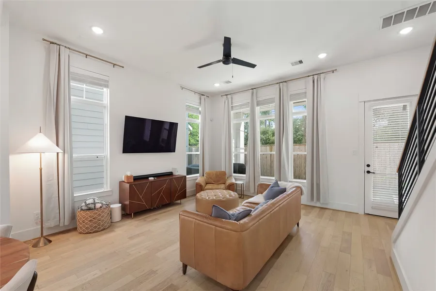 Welcome to 9015 Wellspring Drive located in the heart of Spring Branch and in a quiet and spacious gated community. Featuring both the rare private drive way + private fenced backyard and even a covered patio all with the privacy of no back neighbors. With a thoughtful 1855 sq/ft layout, first floor living, 3 well appointed bedrooms and a bonus flex room upstairs - this home has much to offer. Sleek fixtures and engineered wood floors give this home both a modern yet warm feel. Premium finishes including Quartz countertops found throughout and soaring high ceilings give the home an elevated feel. Located minutes to I-10 and Beltway 8. Very close proximity to Memorial and the Energy Corridor. Spring Branch boasts a diverse and award winning restaurant scene as well as all of the conveniences and amenities you would expect to find in the suburbs. HOA includes trash/sewer/water/recycling. S...