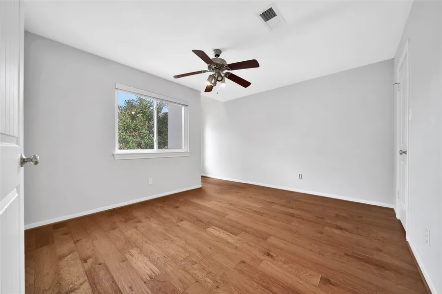 Perfectly centered between two Magnolia trees, this home has style & prime location without the noise. Enjoy living near Trader Joe's, Whole Foods, TARGET, and restaurants galore. Inside you will find 20' ceilings w/gorgeous wood beams, an over the top ceiling fan & a grand fireplace. In the kitchen you will find shaker style cabinets, granite, inset SS sink and a GAS stove w/double ovens. Bonus - all appliances stay with the home + LOFT SPACE! Upstairs you will find custom stair railing leading to the flex / loft room which comes w/ a closet. Two spacious bedrooms up both have custom closets systems and tall ceilings. The primary bedroom has gorgeous wood beams, surround sound hookup and privacy. The ensuite bathroom has tons of storage, a frameless walk-in shower with matching shaker style cabinets. The backyard has a private sitting area and surrounded by great neighbors. Zoned to Poe...