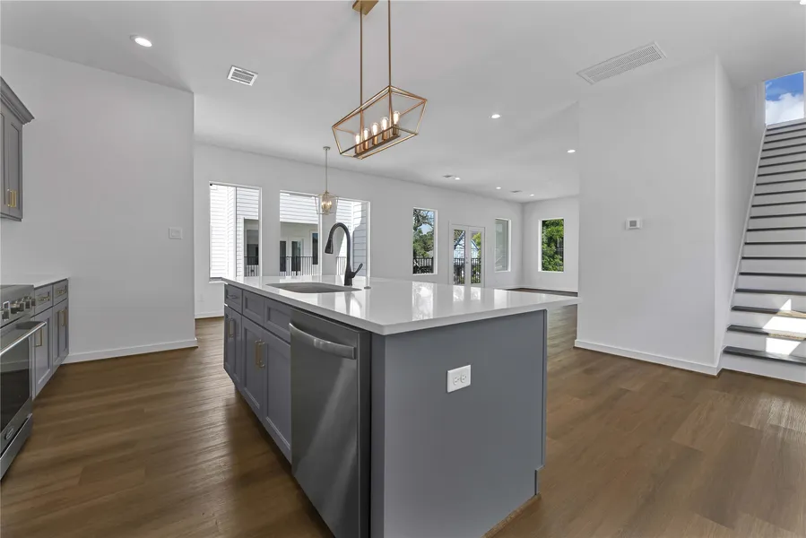 Visualize a newly constructed house in gated community, designed in a sleek modern style. Conveniently located near downtown Houston, boasting three bedrooms and three bathrooms along with a fully equipped kitchen. This home likely showcases modern finishes and thoughtful design touches. The exterior feature a contemporary facade with clean lines and a mix of materials like brick. Inside, envision an open-concept layout with spacious living areas, and large windows flooding the space with natural light. The kitchen is likely the centerpiece, featuring sleek cabinetry, quartz countertops, and stainless steel appliances. The bathrooms are elegantly appointed with modern fixtures, perhaps including a luxurious master bath with a walk-in shower and soaking tub. The bedrooms are spacious and well-appointed, offering comfort and privacy. The overall ambiance reflects a blend of contemporary style and urban convenience, perfect for enjoying the vibrant lifestyle close to downtown Houston.