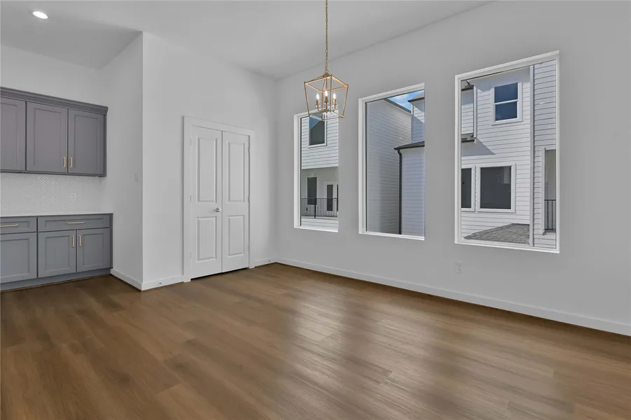 Visualize a newly constructed house in gated community, designed in a sleek modern style. Conveniently located near downtown Houston, boasting three bedrooms and three bathrooms along with a fully equipped kitchen. This home likely showcases modern finishes and thoughtful design touches. The exterior feature a contemporary facade with clean lines and a mix of materials like brick. Inside, envision an open-concept layout with spacious living areas, and large windows flooding the space with natural light. The kitchen is likely the centerpiece, featuring sleek cabinetry, quartz countertops, and stainless steel appliances. The bathrooms are elegantly appointed with modern fixtures, perhaps including a luxurious master bath with a walk-in shower and soaking tub. The bedrooms are spacious and well-appointed, offering comfort and privacy. The overall ambiance reflects a blend of contemporary style and urban convenience, perfect for enjoying the vibrant lifestyle close to downtown Houston.