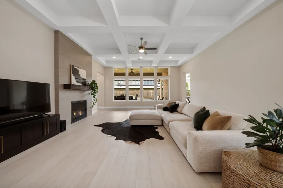 Discover modern elegance in this 2023-built 4-bed, 4.5-bath home in award-winning Bridgeland Prairieland Village. An inviting open layout features wood-look tile, a tray-ceiling living room with fireplace, and a chef’s kitchen with quartz counters, high-end monogram appliances, dual ovens, 6-burner gas cooktop, butler’s pantry, and whole-home water softener with reverse osmosis. The office boasts custom cabinetry and chandelier, while the game room and media room with surround sound offer endless entertainment. Luxurious bedrooms each have en-suite baths; the primary suite includes dual vanities, soaking tub, and large shower. Outdoors, enjoy a gas line for grilling, sprinkler system, and EV-ready garage. Steps away from lakes, trails, tennis, resort-style pool, and award-winning schools, plus convenient access to H-E-B, dining, and major roads, this home blends style, function, and an unbeatable location.