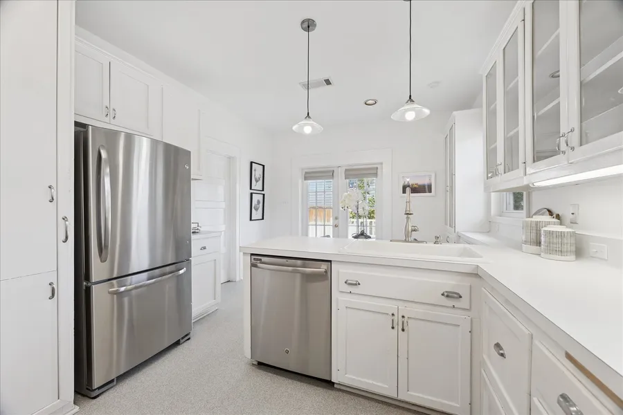 Positioned on a desirable corner lot in the heart of the Houston Heights, this well-maintained bungalow offers timeless character paired with meaningful updates. Hardwood floors and French doors connect the living and dining spaces, creating a bright, natural flow throughout the home. The kitchen opens directly to the backyard, supporting easy indoor-outdoor living. The home has been thoughtfully improved with a recent roof replacement (approx. 4 years old), updated windows throughout, fully replaced plumbing, and a tankless water heater. The interior was freshly painted in 2026, and the backyard was enhanced with gravel and pavers, expanding usable outdoor entertaining space. Additional highlights include a fully fenced yard, side patio, private driveway access from Bruce Street, and guest parking on both Bruce and Pecore. Zoned to Travis Elementary and minutes from Heights dining, trails, and shopping, this home delivers location, character, and quality updates already in place.
